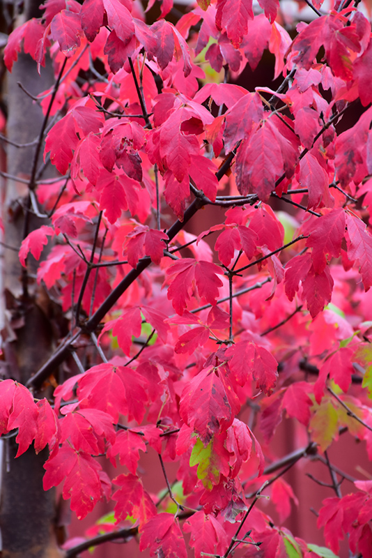 Paperbark Maple has dark green deciduous foliage on a tree with an oval habit of growth. The compound leaves turn outstanding shades of orange and antique red in the fall. The peeling antique red bark is extremely showy and adds significant winter interest.
