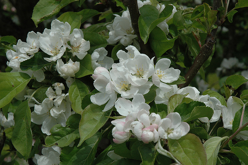 A very hardy red apple-crab with good flavor, but doesn't keep well; eating apples are high maintenance and need a second pollinator; the perfect combination of accent and fruit tree, needs well-drained soil and full sun