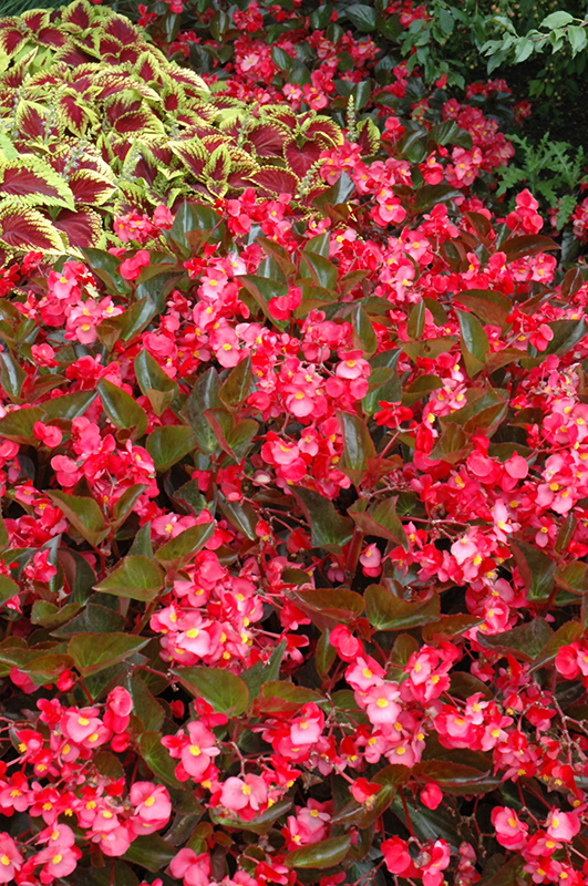 Beautiful big, vigorous plants present bright, extra large flower over deep bronze foliage, blooming throughout the entire season; mounded habit, perfect for adding color to shady patio containers or garden landscapes; deadhead to promote new blooms
