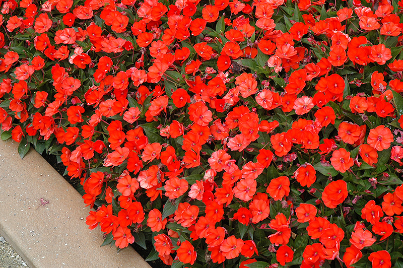 SunPatiens® Compact Electric Orange New Guinea Impatiens in bloom