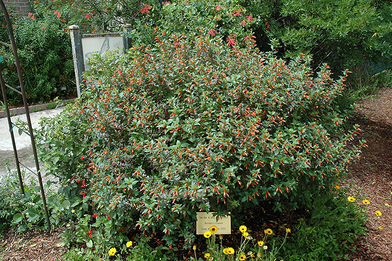 Firecracker Plant will grow to be about 3 feet tall at maturity, with a spread of 3 feet. Its foliage tends to remain dense right to the ground, not requiring facer plants in front. Although it's not a true annual, this fast-growing plant can be expected to behave as an annual in our climate if left outdoors over the winter, usually needing replacement the following year. As such, gardeners should take into consideration that it will perform differently than it would in its native habitat.