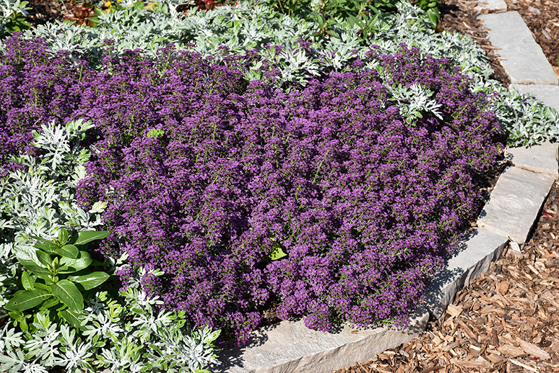 Stream™ Purple Sweet Alyssum will grow to be about 8 inches tall at maturity, with a spread of 3 feet. When grown in masses or used as a bedding plant, individual plants should be spaced approximately 30 inches apart. Its foliage tends to remain low and dense right to the ground. This fast-growing annual will normally live for one full growing season, needing replacement the following year.