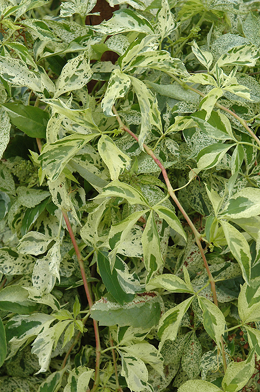 Star Showers Virginia Creeper has attractive white-variegated green foliage on a plant with a spreading habit of growth. The serrated palmate leaves are highly ornamental but do not develop any appreciable fall color.