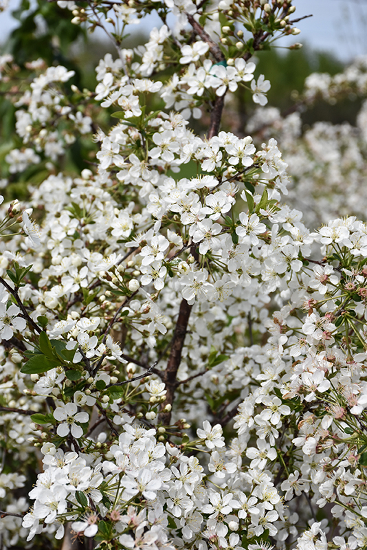 An exciting new development, this hybrid is prized for its tart nearly-black cherries in summer, excellent for jams and pies, as well as showy white flowers in spring; upright and rounded, the hardiest sour (pie) cherry yet