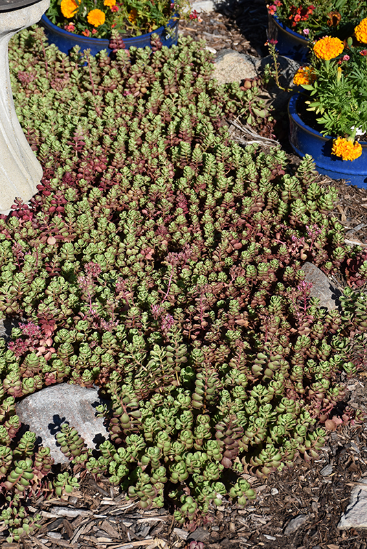 Dragon's Blood Stonecrop will grow to be only 4 inches tall at maturity, with a spread of 18 inches. When grown in masses or used as a bedding plant, individual plants should be spaced approximately 14 inches apart. Its foliage tends to remain low and dense right to the ground. It grows at a fast rate, and under ideal conditions can be expected to live for approximately 10 years. As an herbaceous perennial, this plant will usually die back to the crown each winter, and will regrow from the base each spring. Be careful not to disturb the crown in late winter when it may not be readily seen!