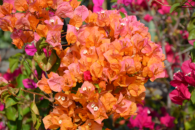 California Gold Bougainvillea is a fine choice for the garden, but it is also a good selection for planting in outdoor containers and hanging baskets. Because of its spreading habit of growth, it is ideally suited for use as a 'spiller' in the 'spiller-thriller-filler' container combination; plant it near the edges where it can spill gracefully over the pot. It is even sizeable enough that it can be grown alone in a suitable container. Note that when growing plants in outdoor containers and baskets, they may require more frequent waterings than they would in the yard or garden.