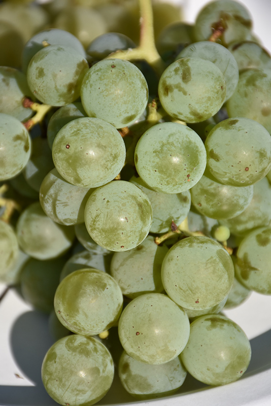 This variety produces small to medium sized clusters of yellow-gold grapes with naturally low sugar and moderate acidity; a vigorous and trailing vine, use as a screen for arbors or winding along fences, requires regular pruning and full sun