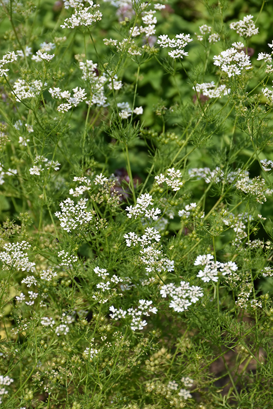 Santo Cilantro will grow to be about 18 inches tall at maturity extending to 24 inches tall with the flowers, with a spread of 18 inches. Its foliage tends to remain dense right to the ground, not requiring facer plants in front. This fast-growing annual will normally live for one full growing season, needing replacement the following year.