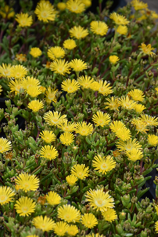 Delmara™ Yellow Ice Plant will grow to be only 4 inches tall at maturity extending to 6 inches tall with the flowers, with a spread of 15 inches. When grown in masses or used as a bedding plant, individual plants should be spaced approximately 12 inches apart. Its foliage tends to remain low and dense right to the ground. It grows at a fast rate, and under ideal conditions can be expected to live for approximately 5 years. As an evegreen perennial, this plant will typically keep its form and foliage year-round.