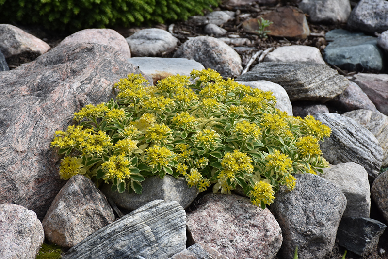 Atlantis™ Stonecrop will grow to be only 6 inches tall at maturity extending to 8 inches tall with the flowers, with a spread of 12 inches. When grown in masses or used as a bedding plant, individual plants should be spaced approximately 10 inches apart. Its foliage tends to remain low and dense right to the ground. It grows at a fast rate, and under ideal conditions can be expected to live for approximately 15 years. As an herbaceous perennial, this plant will usually die back to the crown each winter, and will regrow from the base each spring. Be careful not to disturb the crown in late winter when it may not be readily seen!