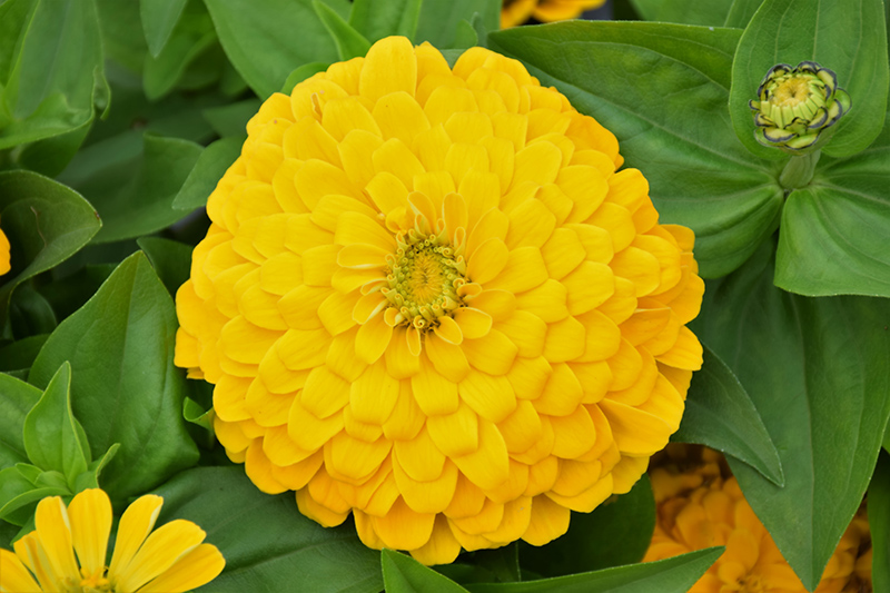 Magellan Yellow Zinnia features bold double yellow ball-shaped flowers at the ends of the stems from mid spring to late summer. The flowers are excellent for cutting. Its pointy leaves remain green in color throughout the season.