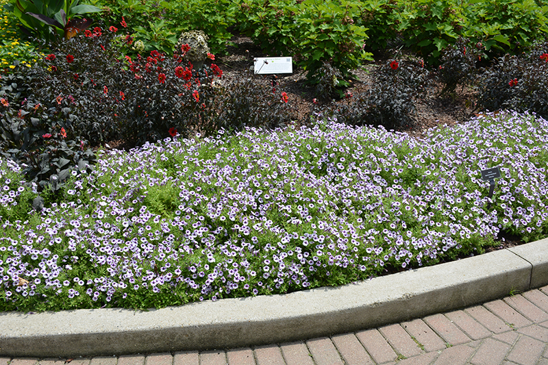 This fast growing, long bloomer adds the perfect pop of color to any hanging basket, patio container or sunny gardens; large white and violet flowers stand out again green foliage; mounded habit with trailing tendencies; heat tolerant and low maintenance
