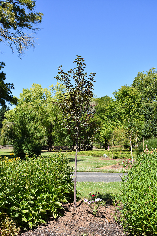 A stunning selection with an upright, oval habit and excellent disease resistance; bright magenta-pink flowers in spring; tiny, deep red fruit persists into fall and winter; foliage holds it burgundy-red color, with bronze-orange tints in fall
