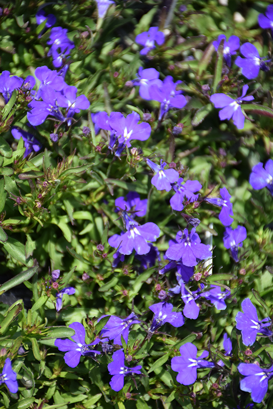 Riviera Marine Blue Lobelia will grow to be only 5 inches tall at maturity, with a spread of 8 inches. When grown in masses or used as a bedding plant, individual plants should be spaced approximately 8 inches apart. Its foliage tends to remain low and dense right to the ground. Although it's not a true annual, this fast-growing plant can be expected to behave as an annual in our climate if left outdoors over the winter, usually needing replacement the following year. As such, gardeners should take into consideration that it will perform differently than it would in its native habitat.