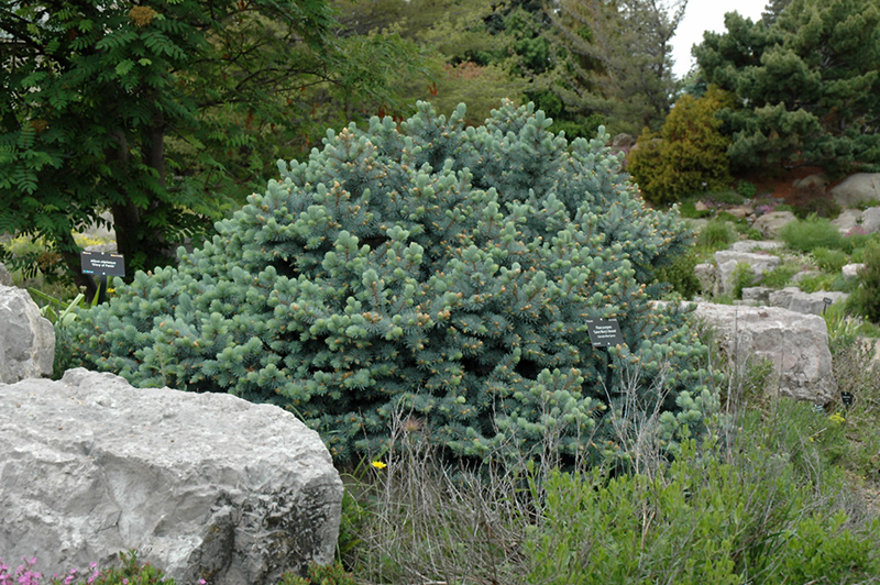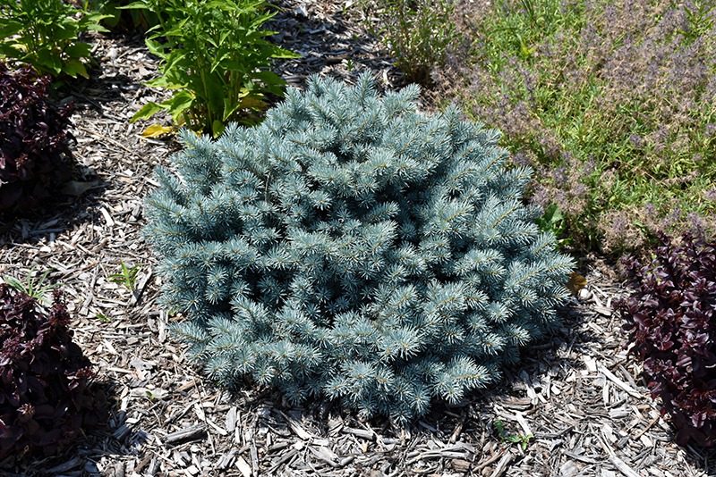 This may be the finest groundcover blue spruce available; forms a dense, spreading mound of steel-blue needles that creeps to fill in an area, holds its color exceptionally well; an exciting alternative to run-of-the-mill spreading junipers