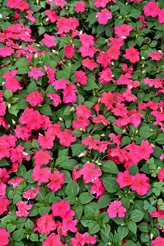 Beacon® Lipstick Impatiens is a dense herbaceous annual with a mounded form. Its medium texture blends into the garden, but can always be balanced by a couple of finer or coarser plants for an effective composition.