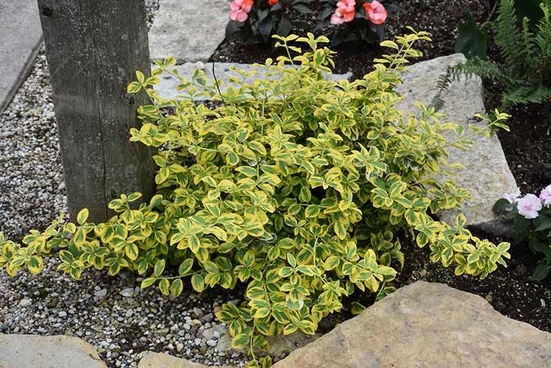 Gold Splash® Wintercreeper will grow to be about 24 inches tall at maturity, with a spread of 12 feet. It tends to fill out right to the ground and therefore doesn't necessarily require facer plants in front. It grows at a fast rate, and under ideal conditions can be expected to live for approximately 30 years.