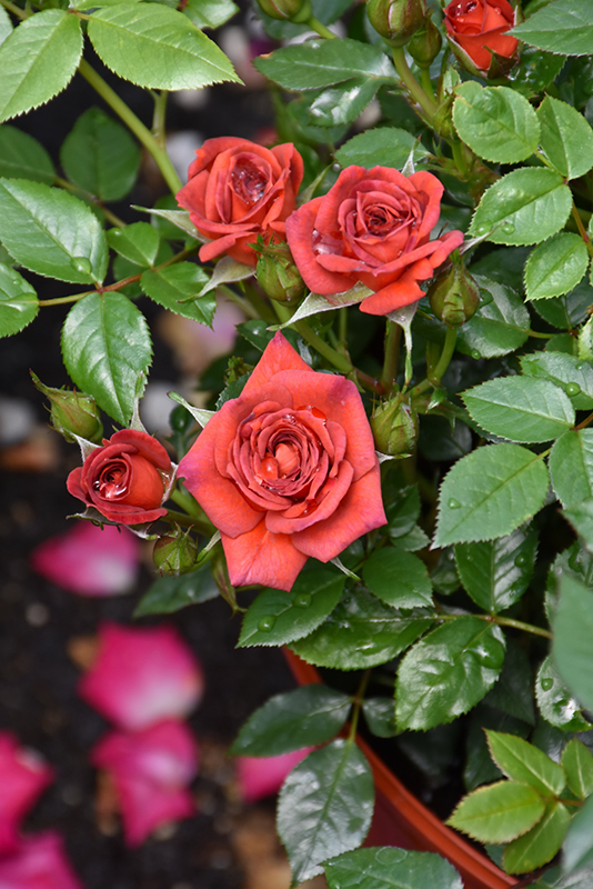 Coffee Bean™ Rose makes a fine choice for the outdoor landscape, but it is also well-suited for use in outdoor pots and containers. With its upright habit of growth, it is best suited for use as a 'thriller' in the 'spiller-thriller-filler' container combination; plant it near the center of the pot, surrounded by smaller plants and those that spill over the edges. It is even sizeable enough that it can be grown alone in a suitable container. Note that when grown in a container, it may not perform exactly as indicated on the tag - this is to be expected. Also note that when growing plants in outdoor containers and baskets, they may require more frequent waterings than they would in the yard or garden. Be aware that in our climate, most plants cannot be expected to survive the winter if left in containers outdoors, and this plant is no exception. Contact our experts for more information on how to protect it over the winter months.